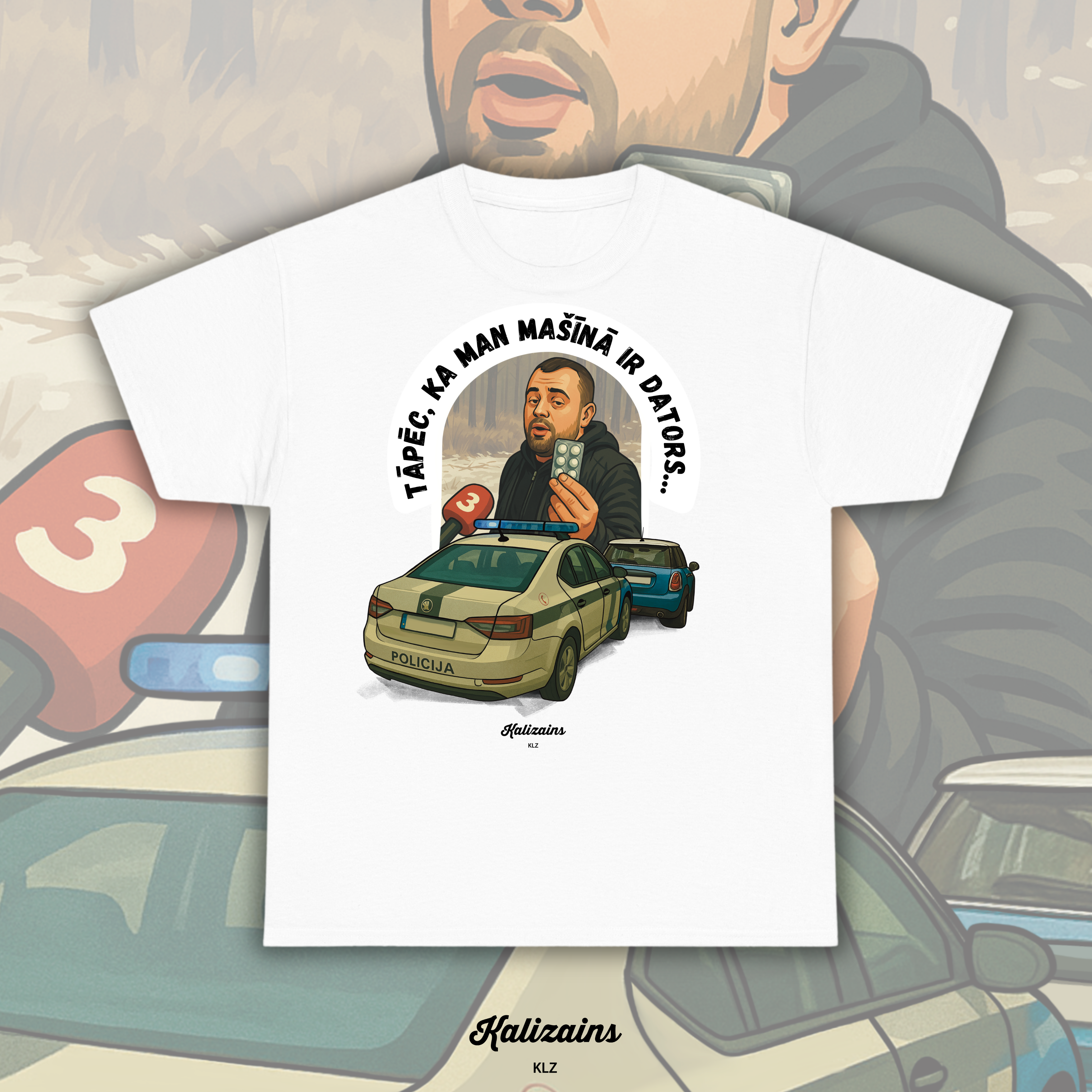 Latviešu leģendārie momenti / teicieni iemūžināti uz apģērba.